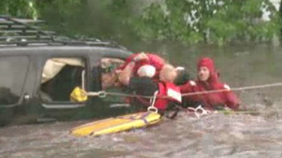 Emergency crews are credited with rescuing a girl and two women from an SUV in northern Iowa that was submerged in floodwaters.